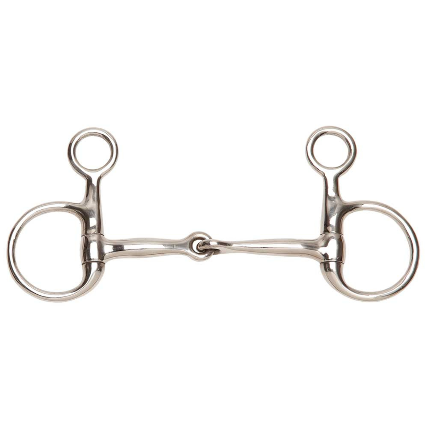 Stainless Steel. The baucher is most often seen in use for showjump and dressage phases in eventing. The reins attach to the eggbutt-like ring at the mouthpiece, while the bridle cheeks attach to the smaller ring. This makes the bit sit flat against the horse's face and is quite fixed in the mouth. Pressure is concentrated on the bars, along with some slight poll pressure.