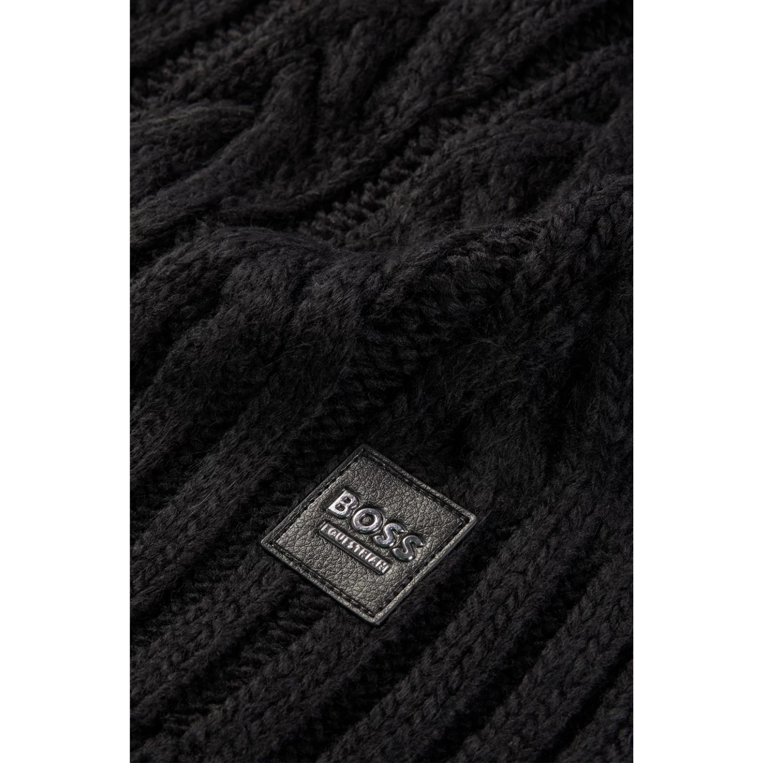 A cosy scarf by BOSS. Knitted in super-soft yarns with a chunky cable structure, this lightweight accessory is detailed with a BOSS logo on a tonal patch towards the hem.