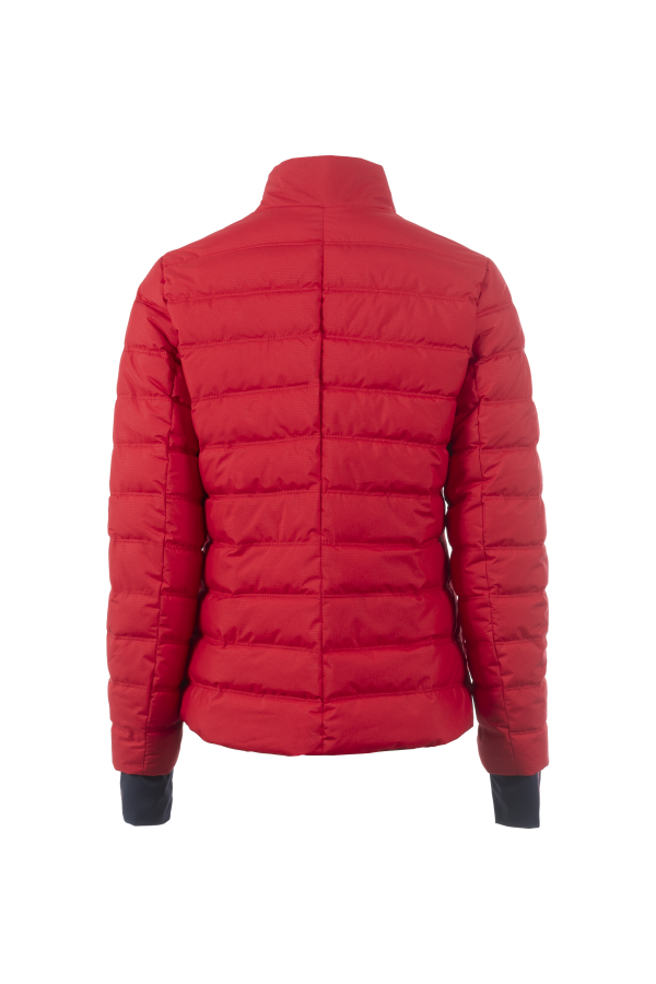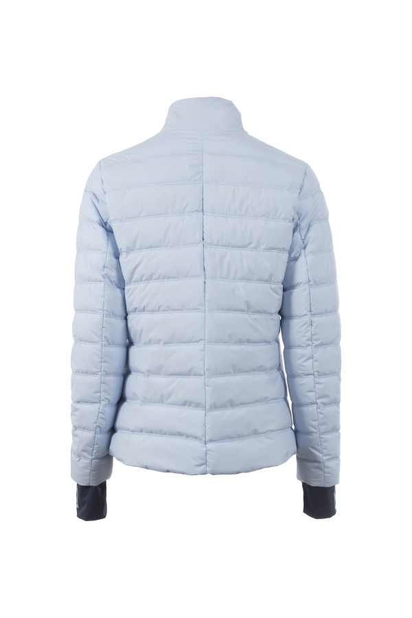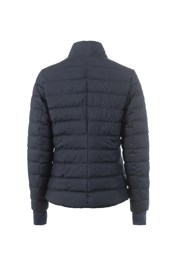 - Short, lightweight stand-up collar quilted jacket with fake down filling