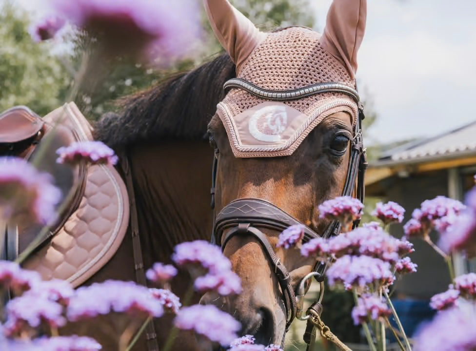 The Fly Veil Wellington 3D has a visible Kentucky logo on the front. This Kentucky Horsewear fly veil protects the horse’s ears against flies while riding. This model features an elegant rope to enhance the contrast between colours.
