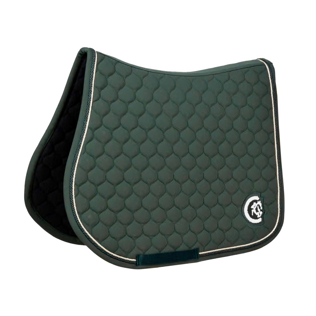 Made from a high-quality cotton-polyester blend, this saddle pad offers unmatched softness and exceptional dirt resistance. Horsehair has a tough time sticking to it! The elegant onion quilting keeps the moisture-wicking, breathable padding securely in place, ensuring stellar performance and long-lasting durability. It retains its excellent functionality and sleek look, even with regular washes.