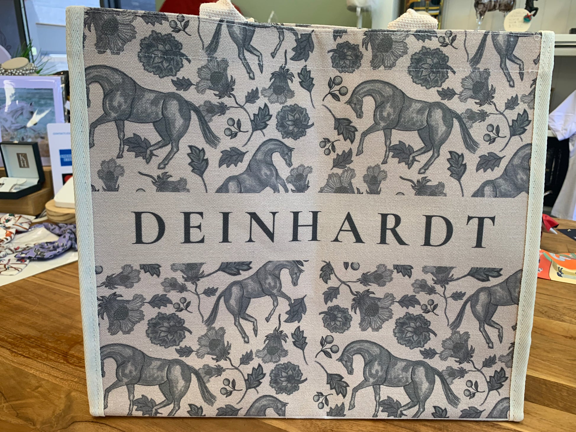 Carry your essential sin style with our signature Deinhardt Designs Tote. Crafted from durable, eco-friendly cotton canvas, this spacious bag features reinforced handles for comfortable all-day wear - whether you're ringside, at the barn, or on the go.
