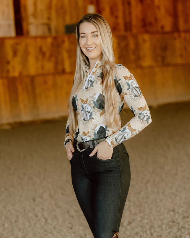 Mo is the horse Ally was lucky to ‘borrow’ during her time at UNH. His sweet nature & complex training were detrimental to Ally’s growth as a rider - And he carried her through some of the hardest times with patience & love. He is full of personality, grace, and carries an ancient wisdom with him that Ally will never forget. Mo now lives out his retirement with Ally’s best friend Marny, who also has a namesake design!