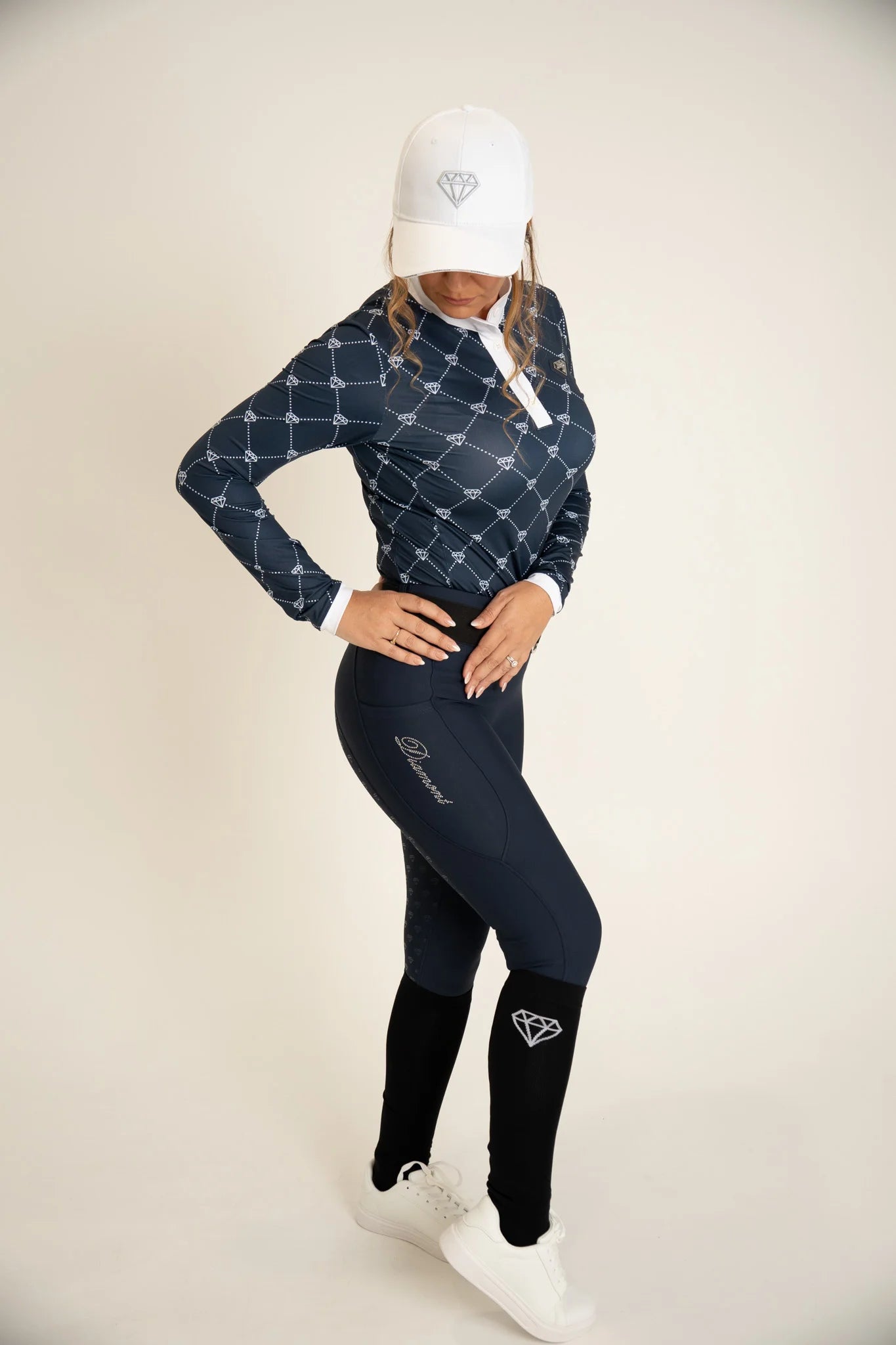 Elevate your riding wardrobe with the Riding Base Layer – Blue Diamont Design – where tradition meets innovation in every stitch. Diamont Equestrian invites you to embrace excellence, ride with poise, and wear sophistication. Live the DiamontLife!