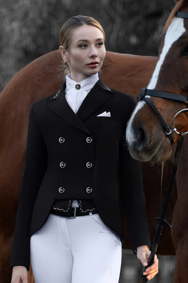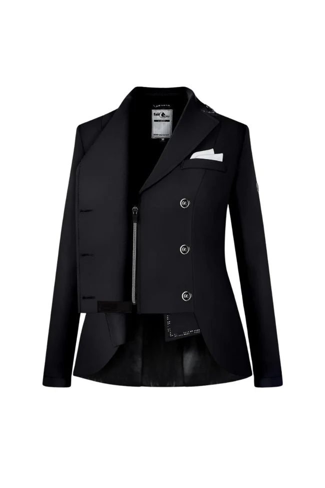 Experience luxury and elegance with FairPlay Reiko Mini Tails. The stunning crystal detailing adds a touch of sophistication, while the zipper under the buttons provides ease of use. The tailored fit ensures a sleek and stylish look. Elevate your wardrobe with this simple yet luxurious piece.