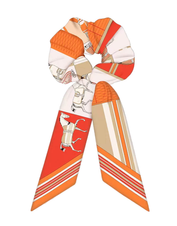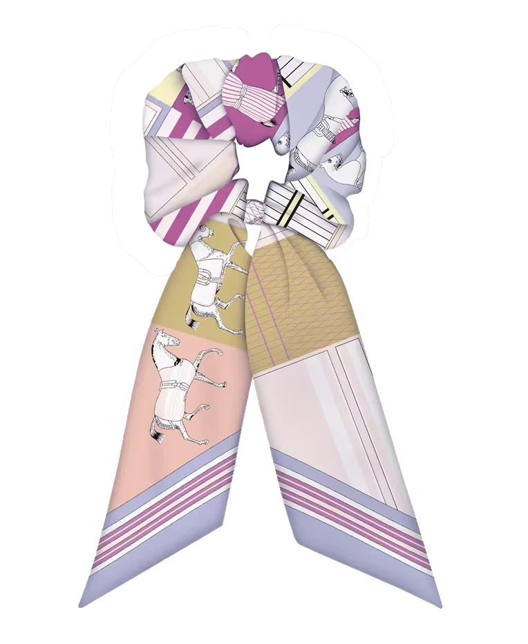 FELICITY Scrunchie Twilly Combo Horse Design Hair Tie with Ribbon