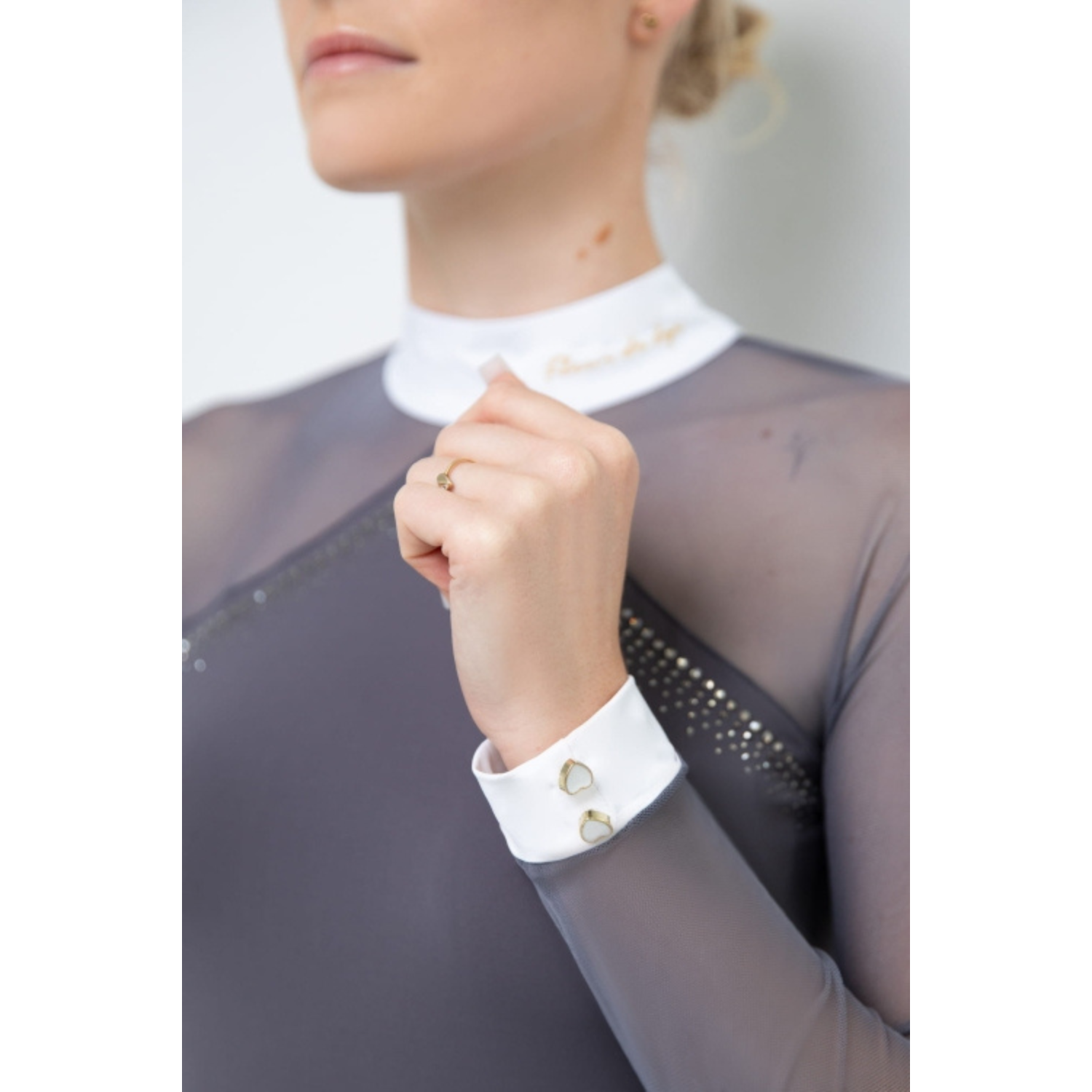 The MOLLY SPARK competition shirt is a sophisticated blend of minimalist design and subtle sparkle. Created for riders who appreciate elegance, comfort, and premium functionality in the show ring. Perfect for competitions, training sessions, and formal events.