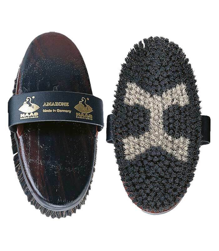 The Haas Body Brush Amazone is a classic, high-quality finishing brush with superior natural bristle field, durable synthetic back and patented 'no rip' leather strap will make both you and your horse happy. It guarantees excellent grooming results and feels pleasant to your horse.