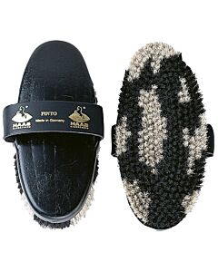 The Pinto will clean any horse to a sparkling shine, even the plainest of bays! The meticulously placed black (stiffer) horsehair penetrates the coat, while the white (softer) horsehair brings gloss.