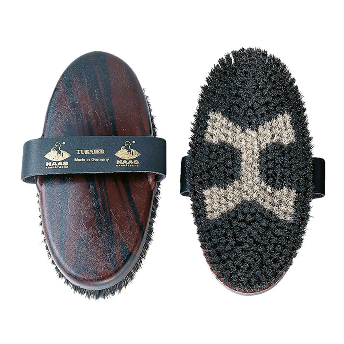 The Haas Turnier is a classic, high-quality body brush with superior natural bristle field, durable synthetic back and patented ‘no rip’ leather strap. It will make both you and your horse happy - guaranteed! This body brush ensures good grooming results and feels pleasant to your horse.