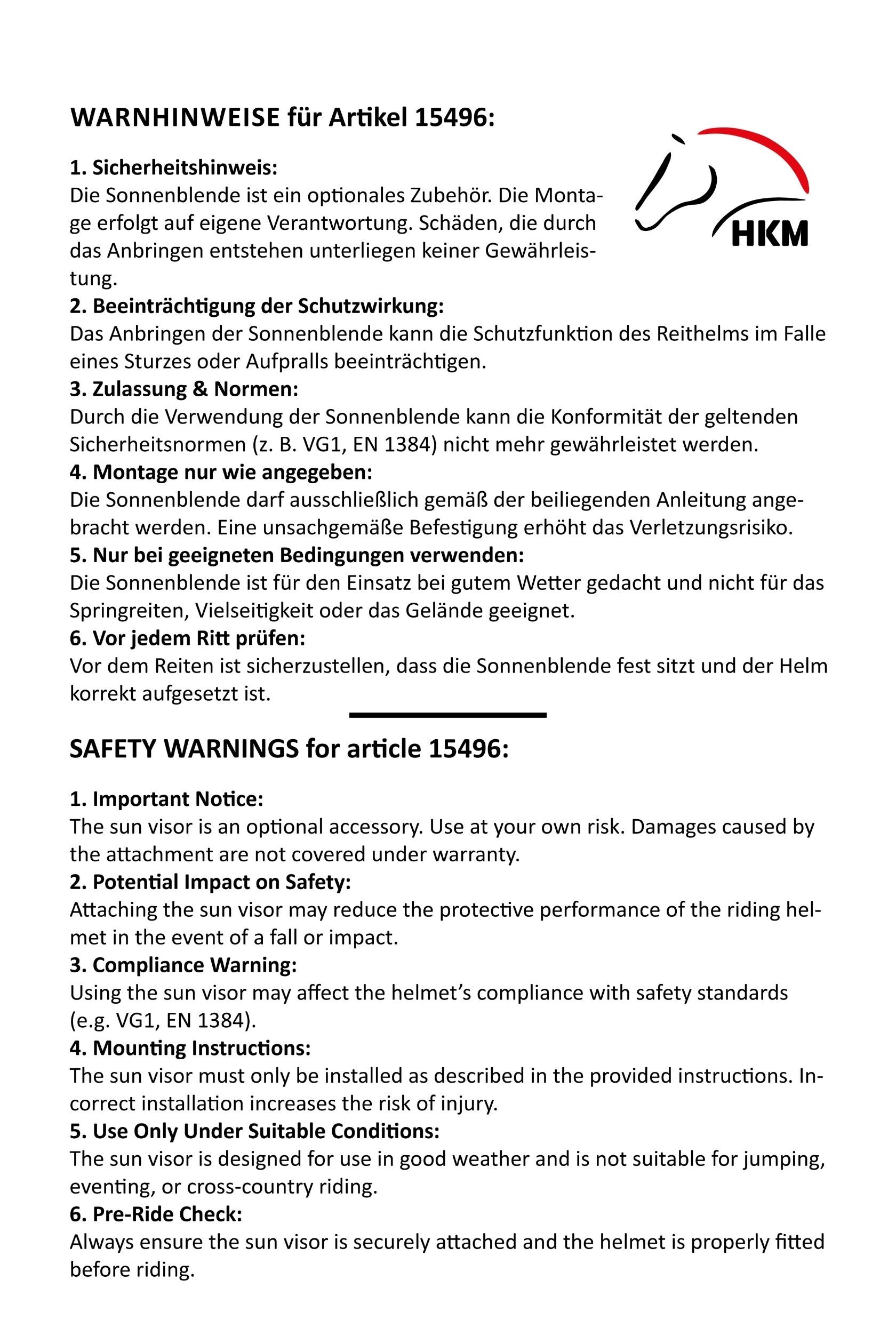 - transparent foil visor with black mesh for clear vision and optimum sun protection