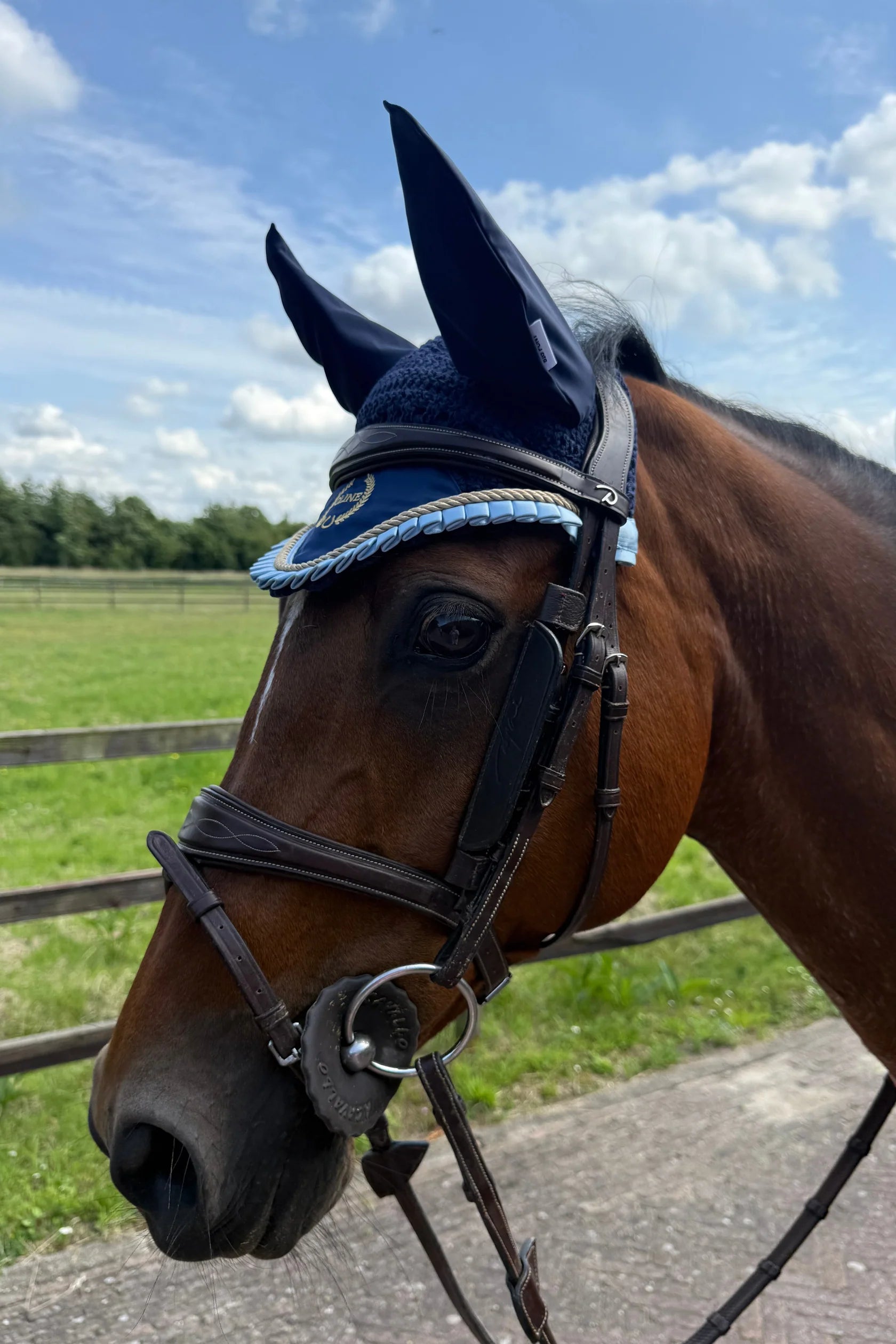 Thanks to the elastic fabric at the ears, this earnet fits all types of ponies from small to large sizes. The material ensures that moisture and sweat are quickly wicked away, so that your pony stays dry and comfortable, even during long rides or competition days. The classic crocheted structure gives the earnet a timeless look, while the lower part of the ear net is covered with a shiny, dirt repellant material that makes maintenance easier and ensures that the earnet stays beautiful for longer.