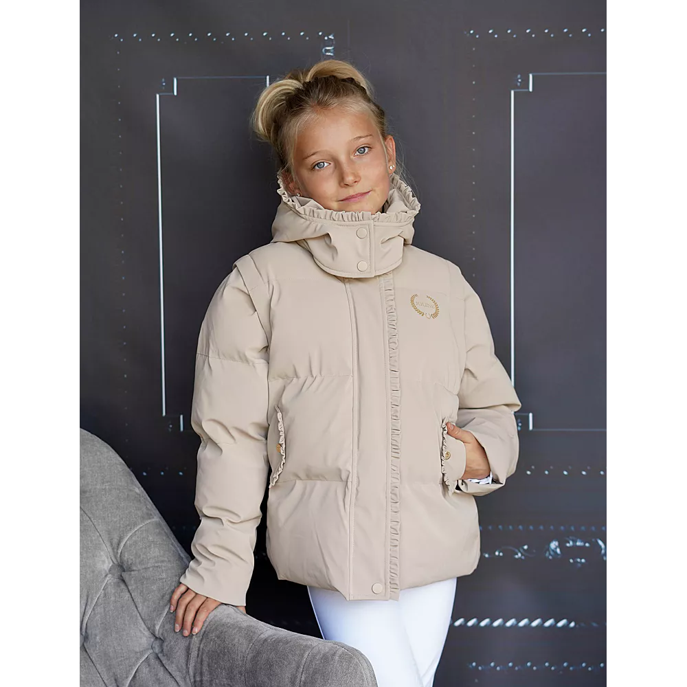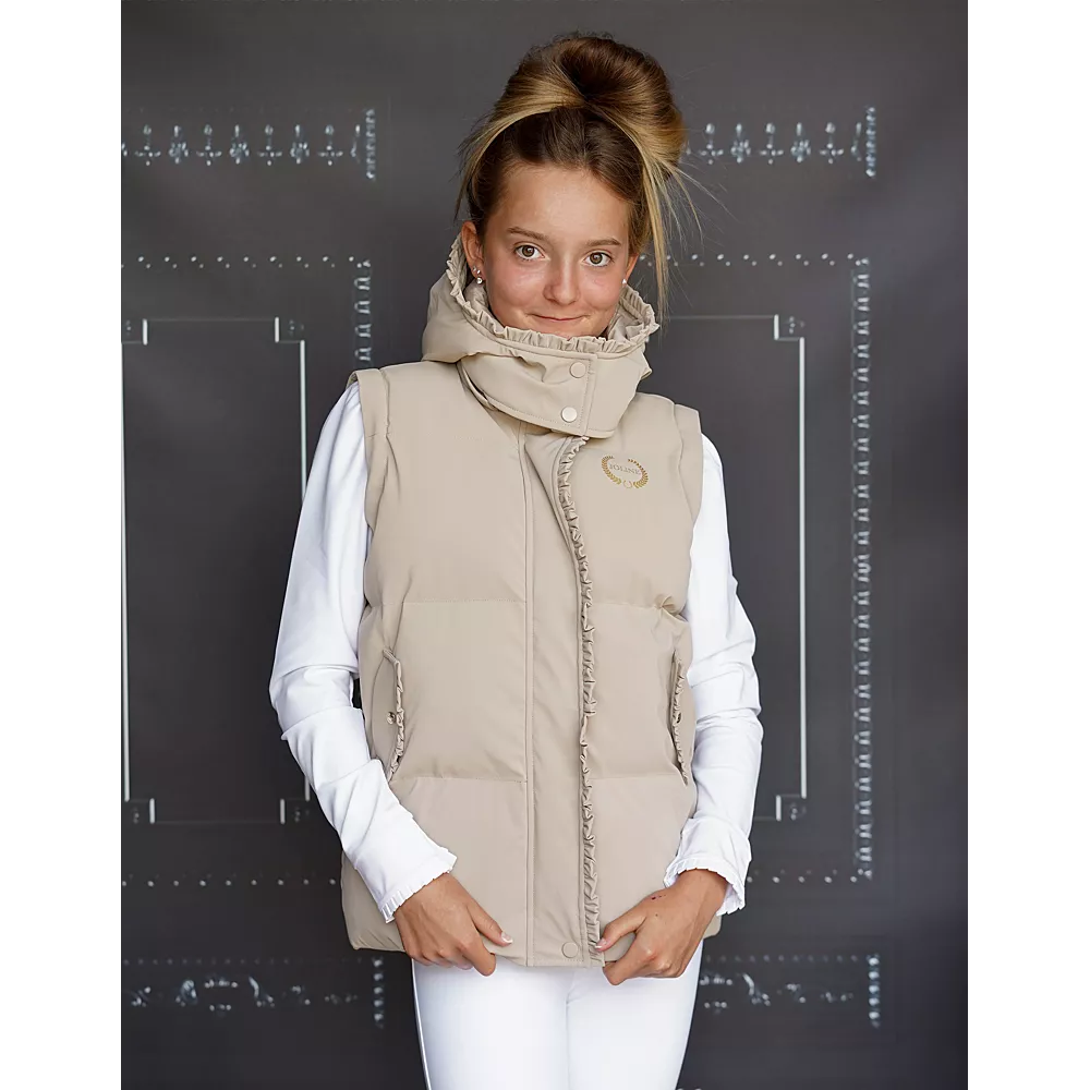 The winter jacket/bodywarmer in beige offers kids the warmth and flexibility they need to move freely, while protecting them from cold and rain. Perfect for everyday use and outdoor activities such as horseback riding!