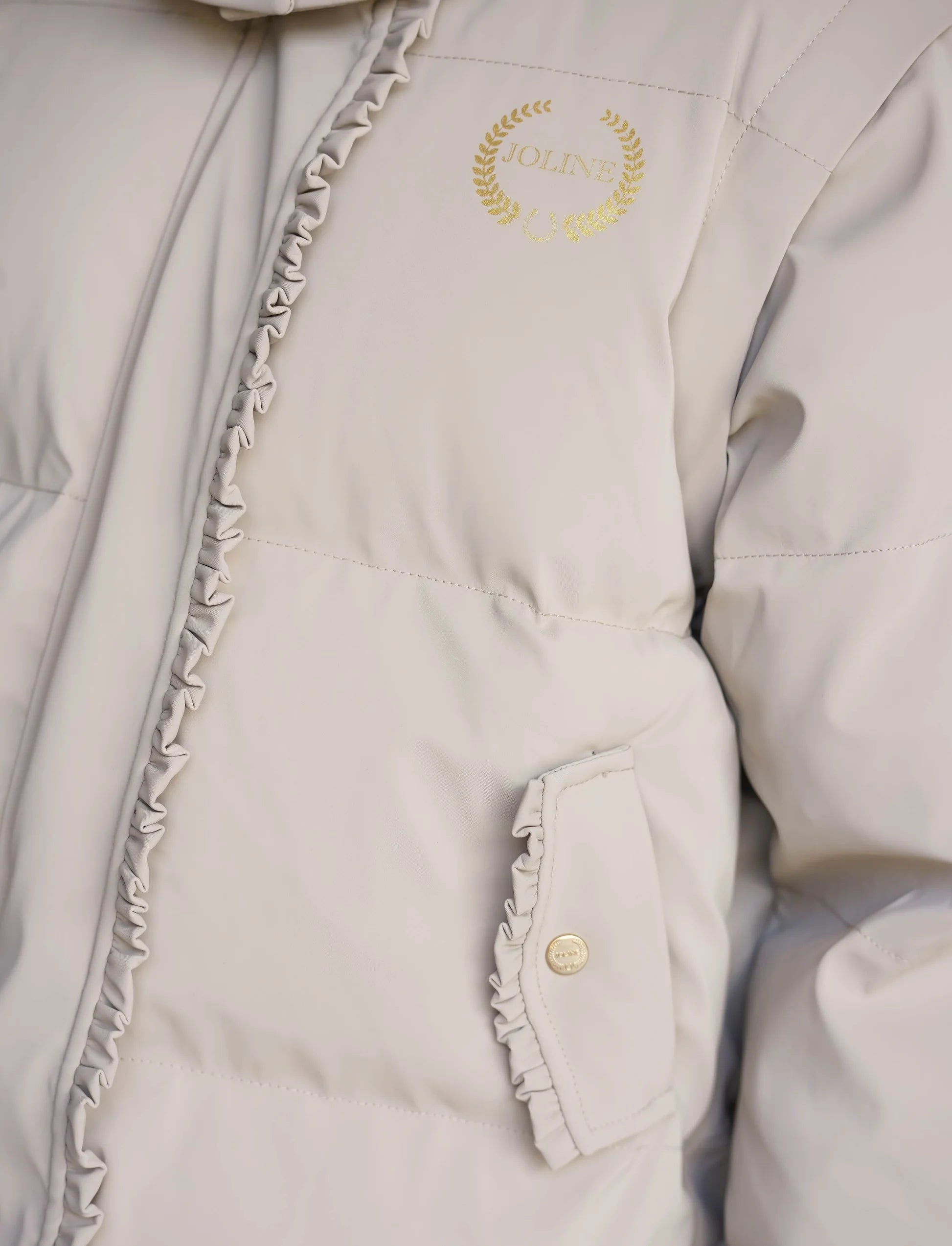 - Useful details: Finished with a ruffle along the hood, pockets and zipper for a playful touch.