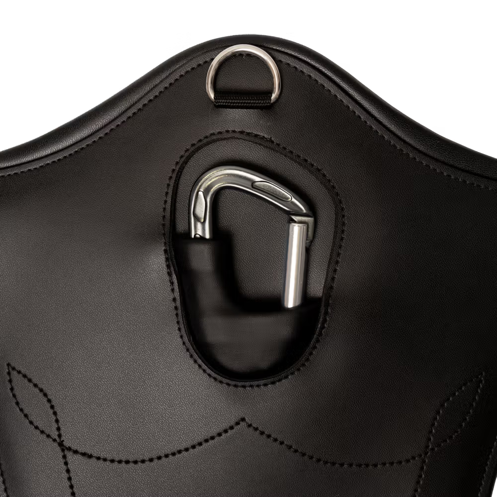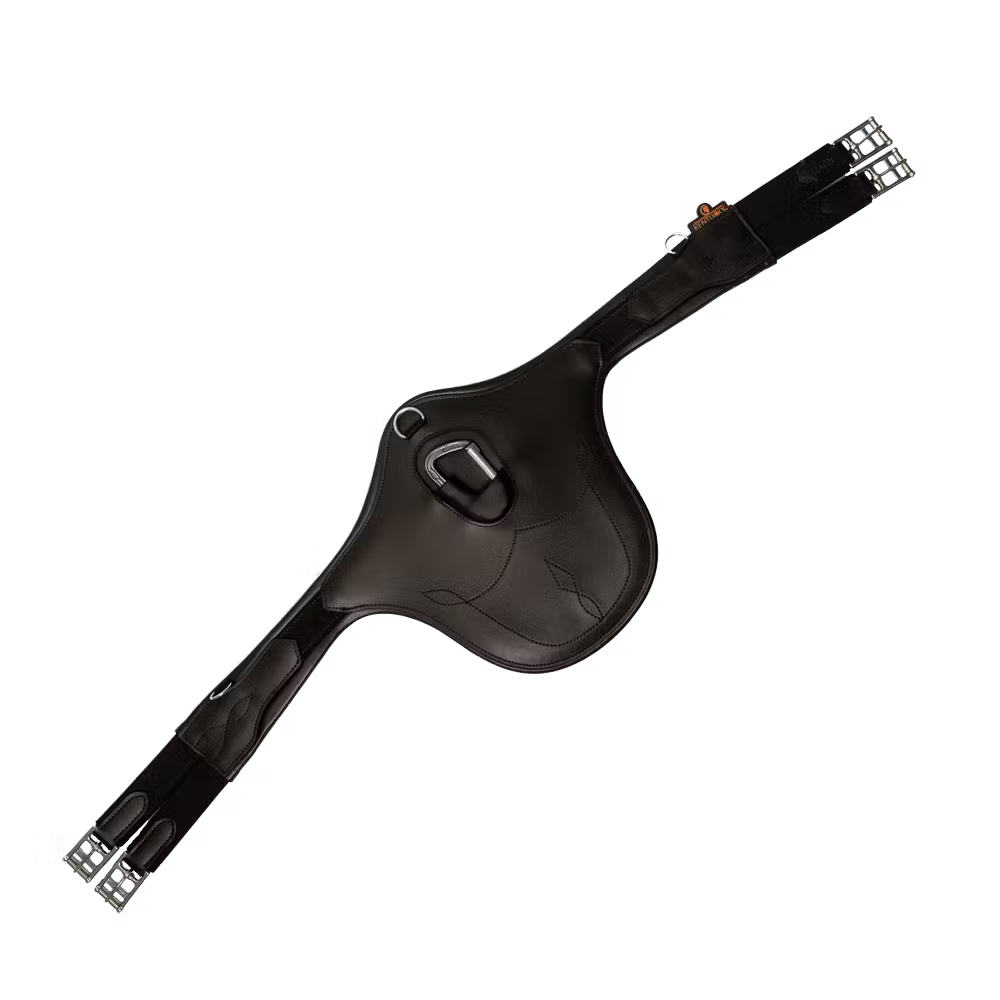 This stud girth’s anatomically shaped design is meticulously crafted to prioritize your horse’s comfort and performance. The shape frees the elbows, reducing restriction and allowing for natural, uninhibited movement during any activity. The even pressure distribution, ensured by elastics on both ends, minimizes discomfort and promotes relaxation, even during intense work. Thoughtfully designed with a flat central hook, it blends seamlessly into the girth to enhance safety without compromising the sleek look or the horse’s freedom of movement. This combination of ergonomics and innovation makes it a standout choice for riders who want the best for their horse.
