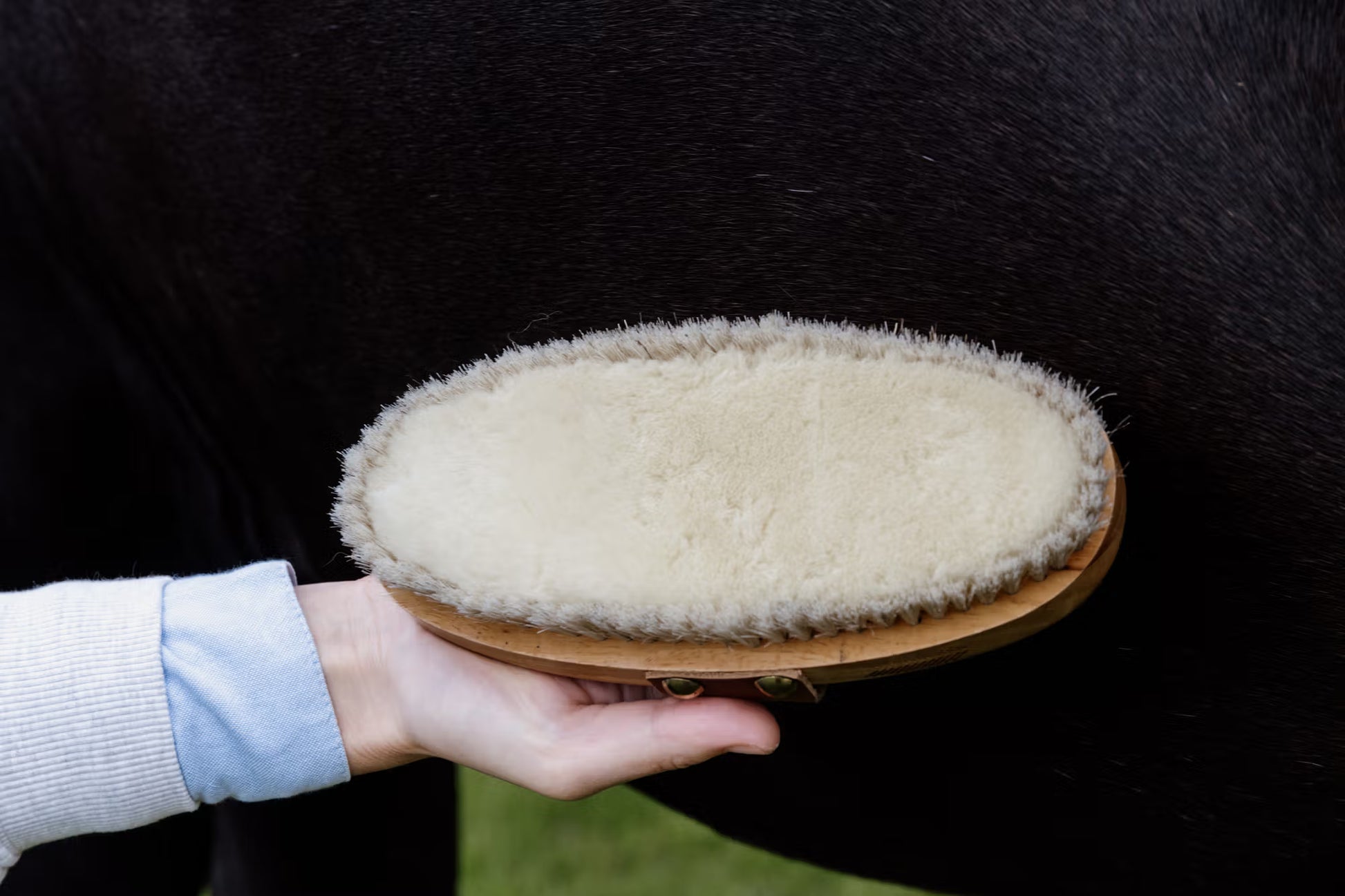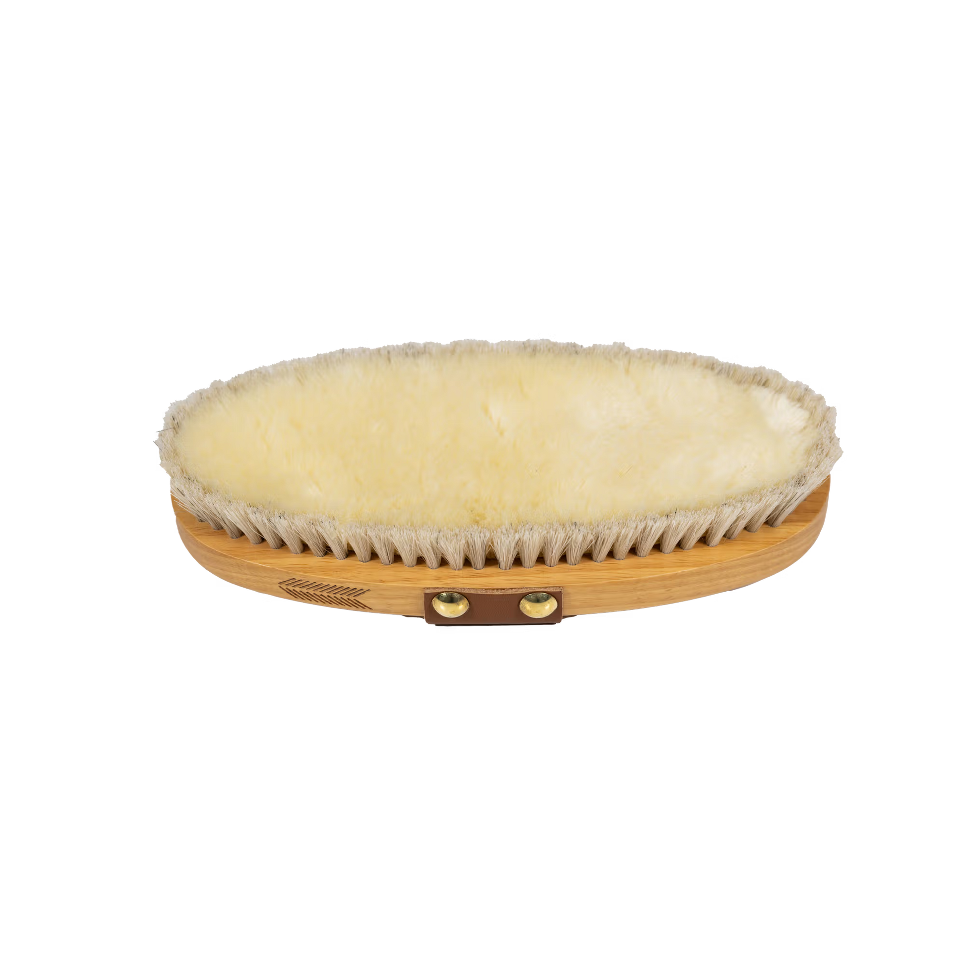 Elevate your horse grooming routine with our Overall Brush Body Soft Shine. Made with precision and care, this brush combines the luxurious softness of vegan sheepskin with the natural effectiveness of real horse hair.