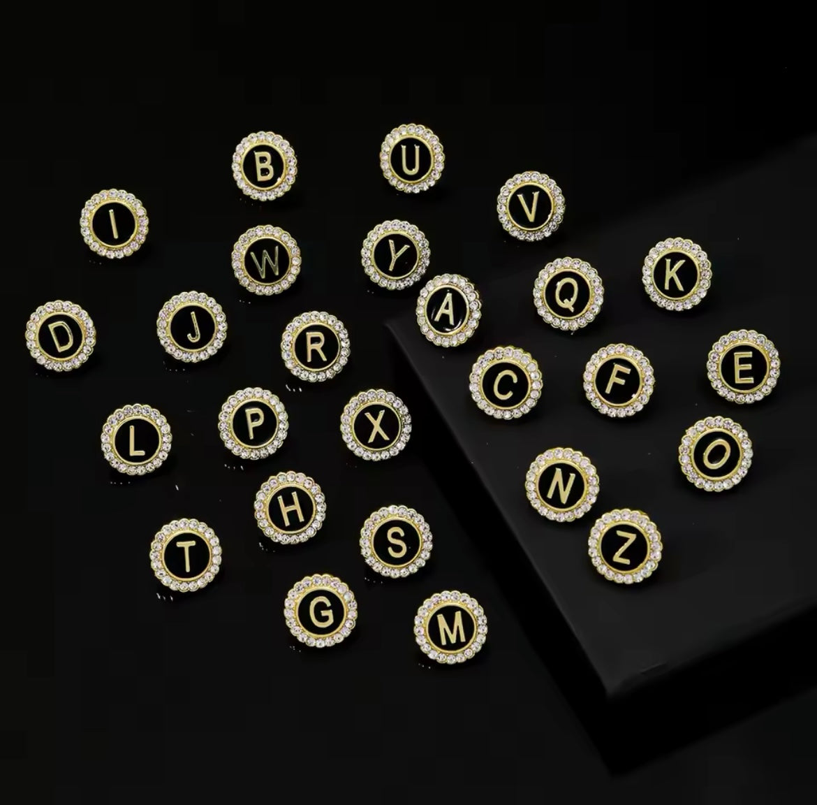 The Horse Den Diamante Letter Pin - Black & Gold Round